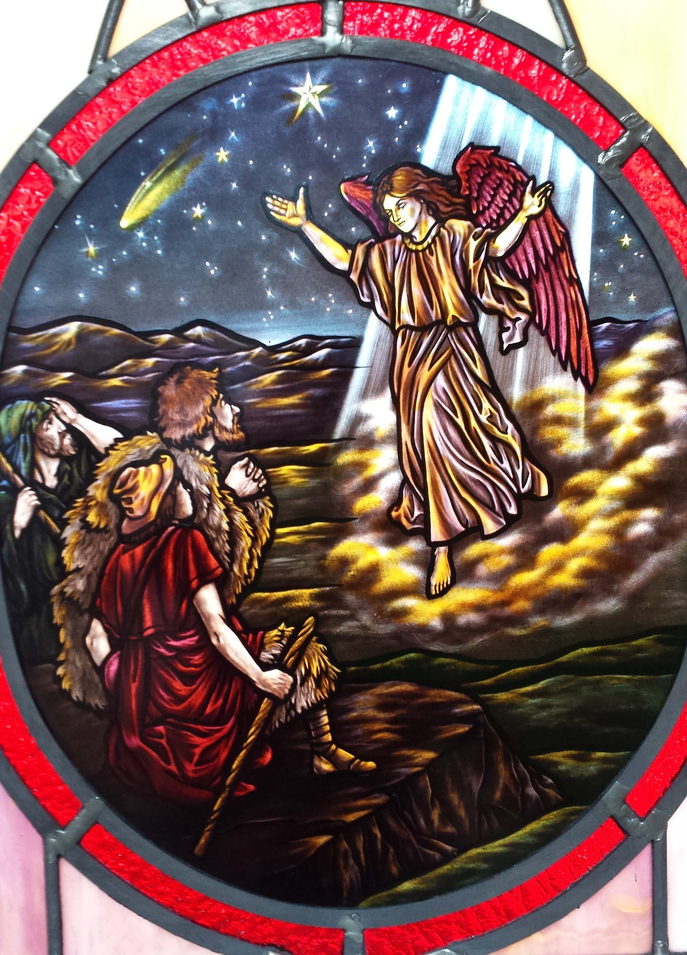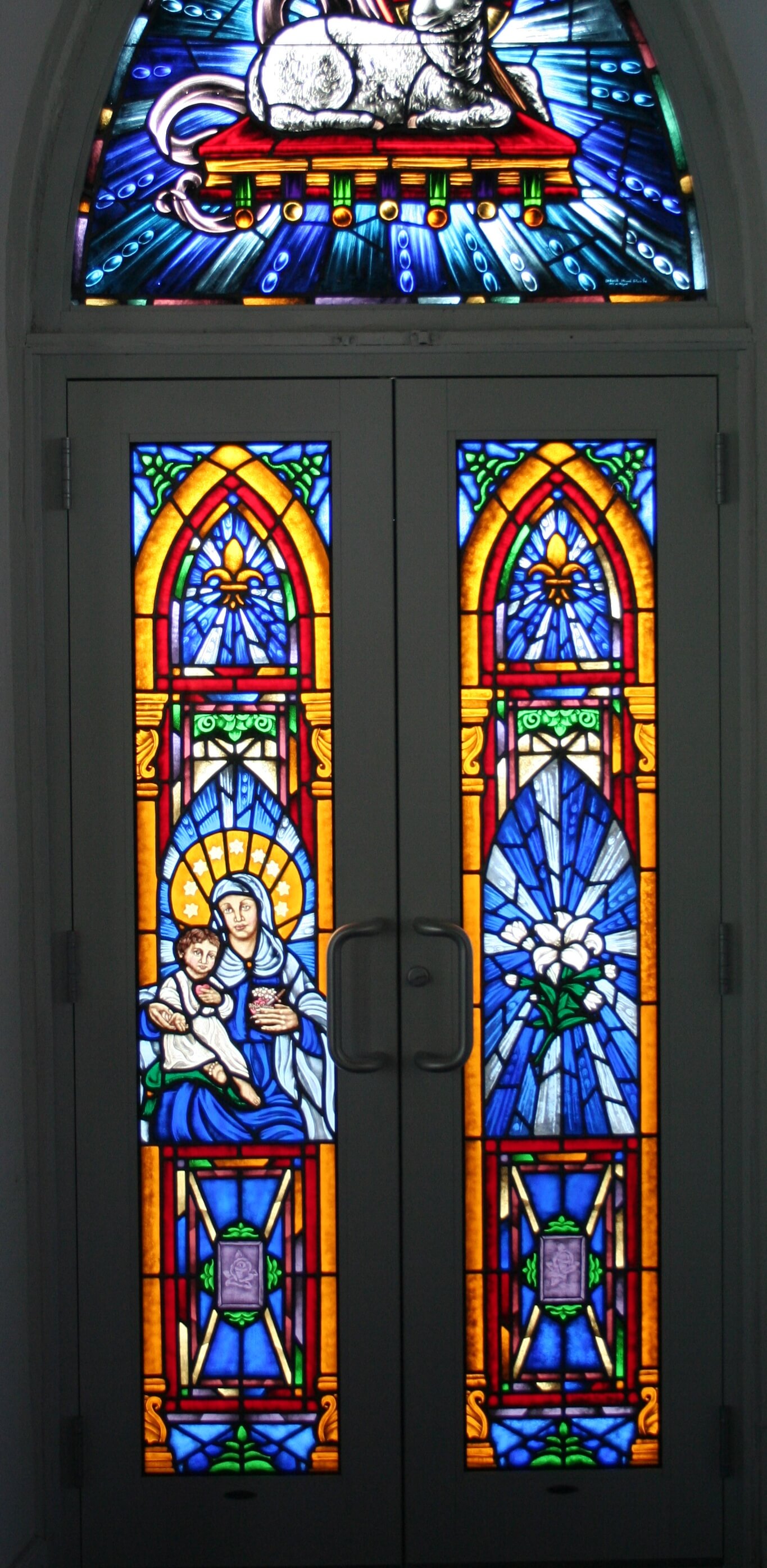 Below are examples of traditional hand-painted stained glass also belonging to the leaded category. This is the style of glass that gave stained glass its name. The possibilities with hand-stained glass are unlimited, since they are hand-drawn and hand-painted to your desired specifications.